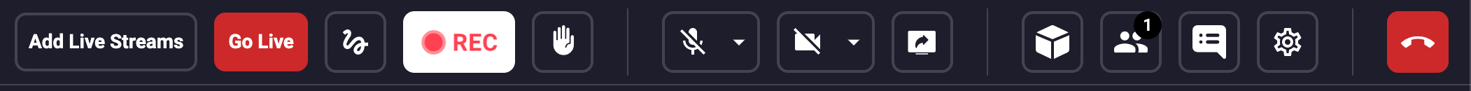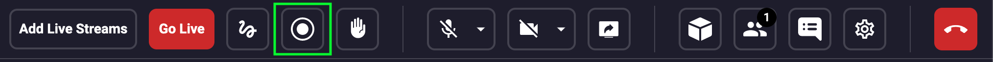 Recording is now available in Symposium Meetings, Webinars, and Live Streams! To record a Live Session, first join the Live Session and then select the record icon, as indicated below. Once the Live Session has started recording, the icon will appear in inverted colors.