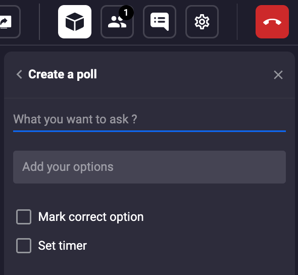 You will then be able to customize your poll question and answers, as well as specify whether there is a correct answer and if you would like to set a timer.